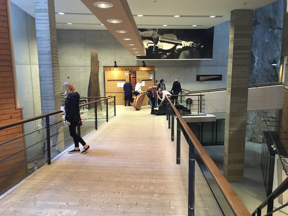 - Kaustinen-salin sisäänkäynnillä